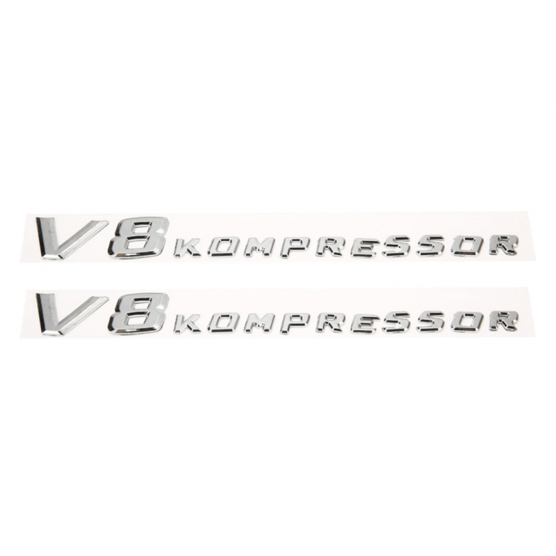 Označení / Znaky / Nápisy / Logo na blatníky V8 KOMPRESSOR - stříbrné (chromové)