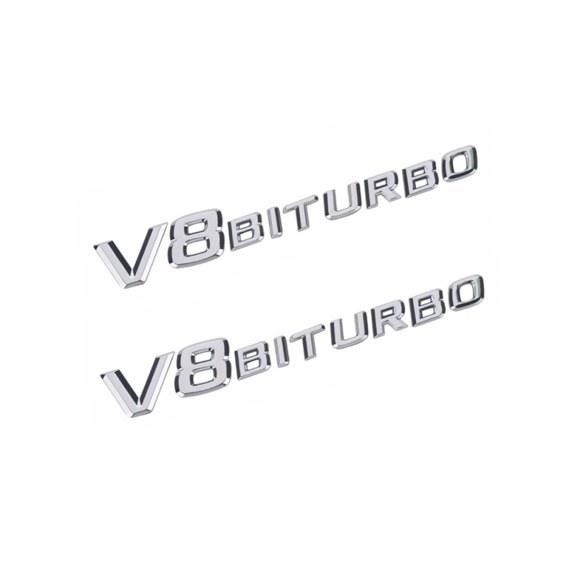 Označení / Znaky / Nápisy / Logo na blatníky V8 BITURBO - stříbrné (chromové)