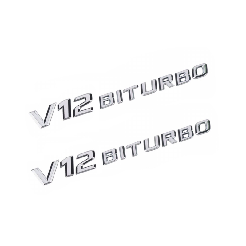 Označení / Znaky / Nápisy / Logo na blatníky V12 BITURBO - stříbrné (chromové)
